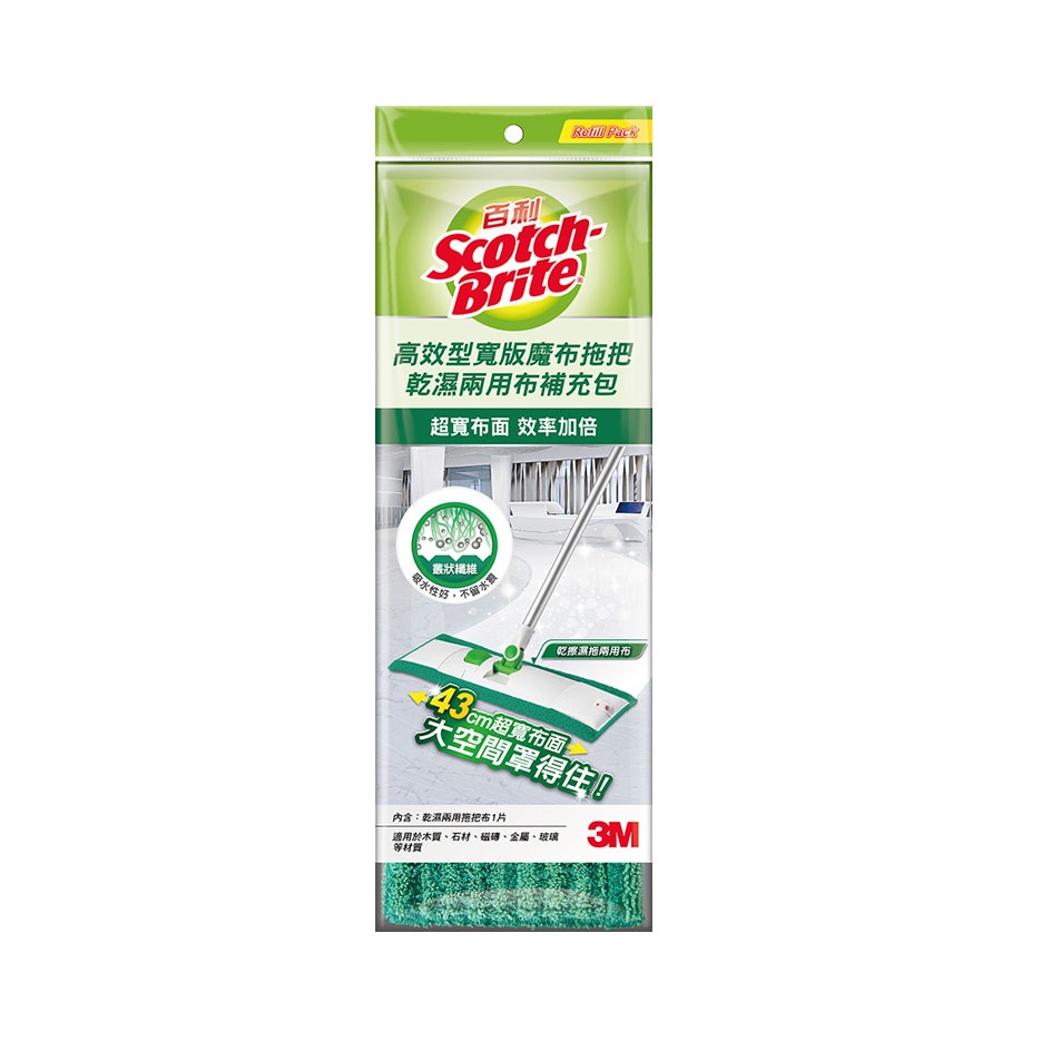 3M 百利 高效型寬版魔布拖把布 補充包一入