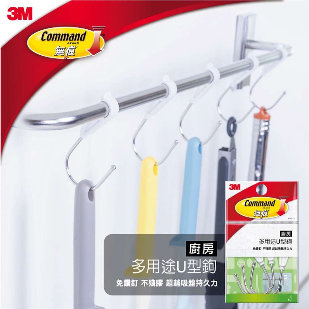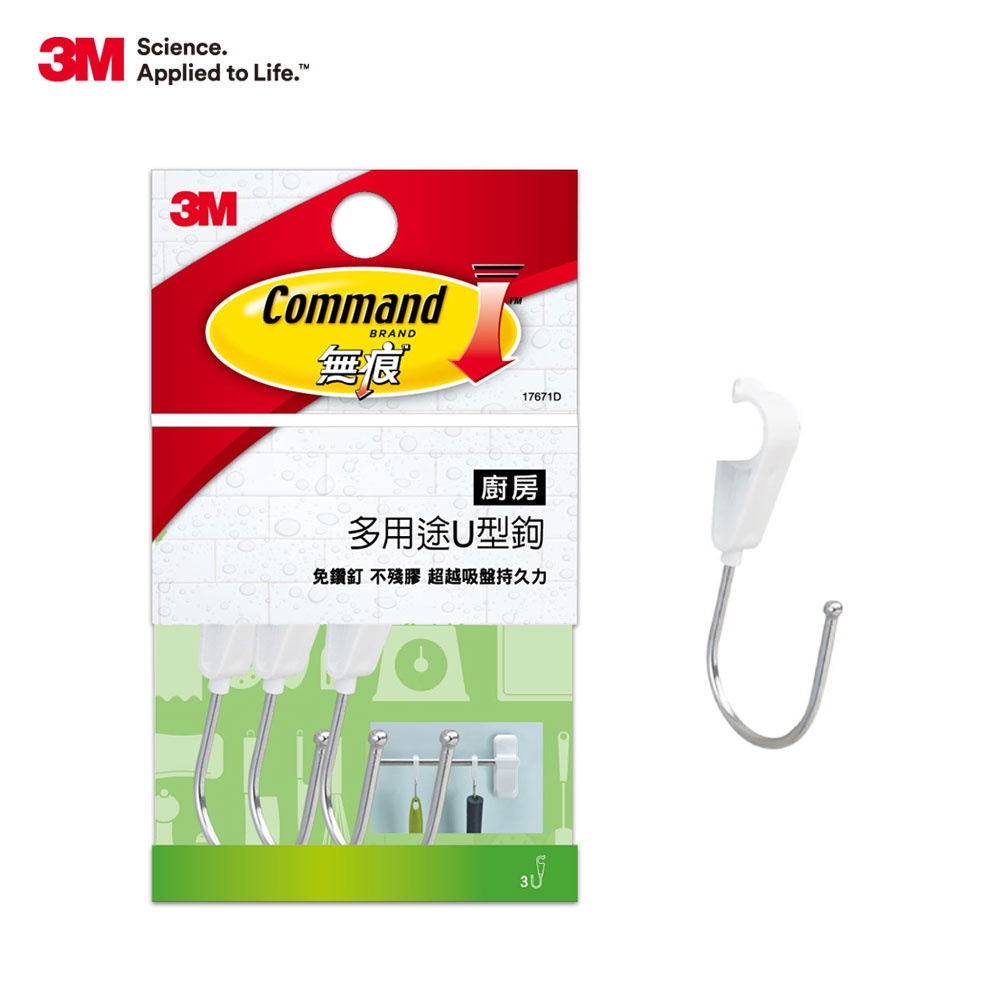 3M 無痕 廚房防水收納系列-多用途U型鉤 (3支/入)-極淨系列擴充不適用