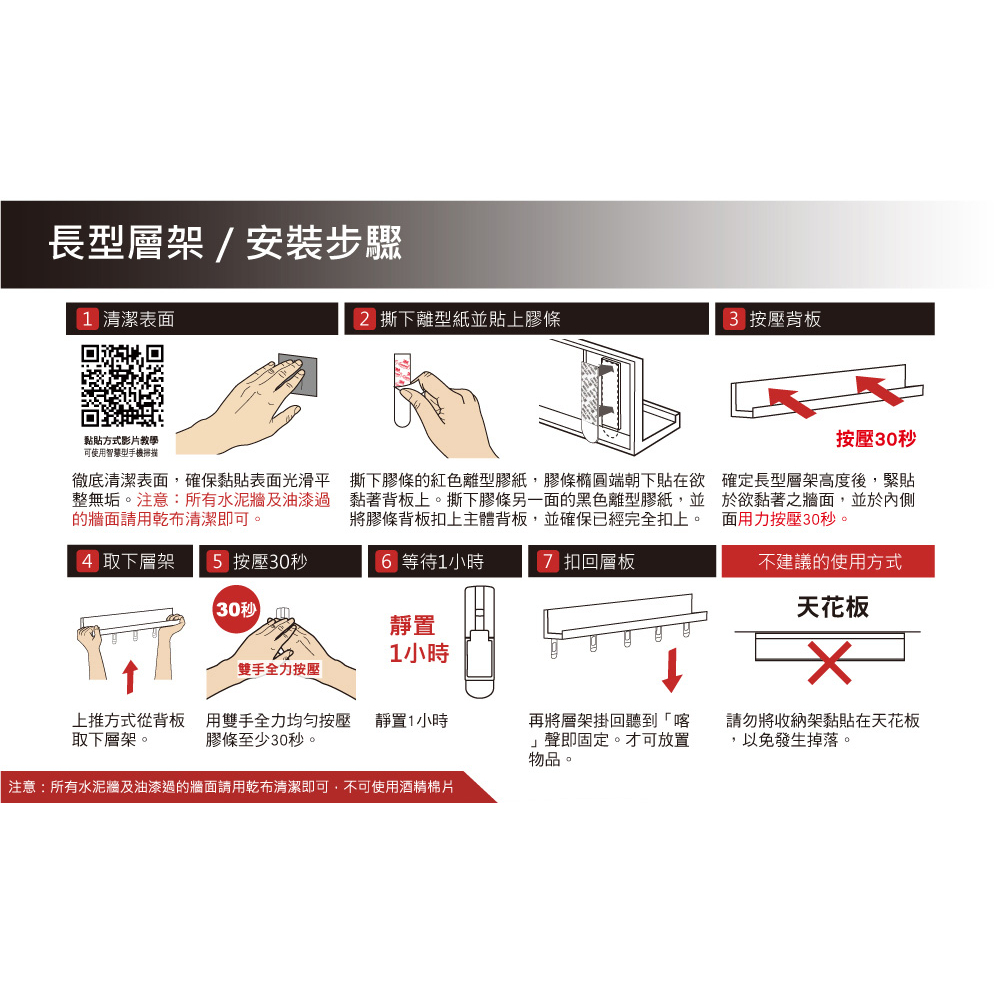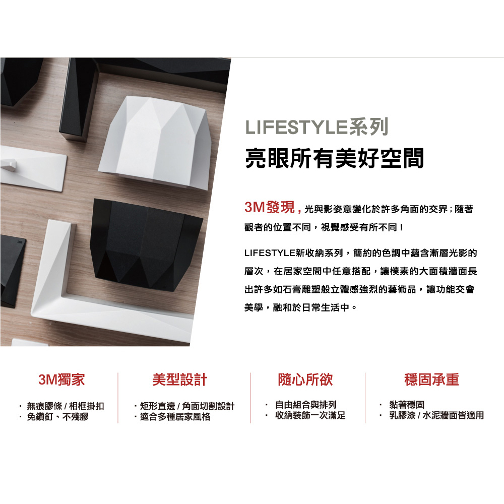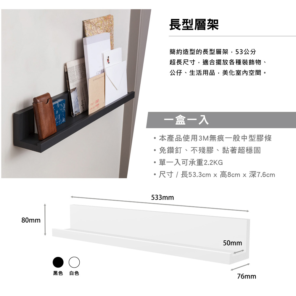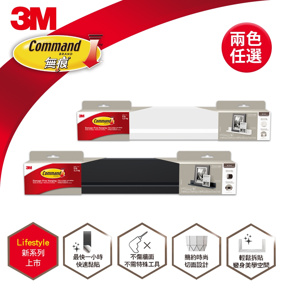 3M 無痕 LIFESTYLE層板置物公仔收納掛架-長型層架(白) 2入