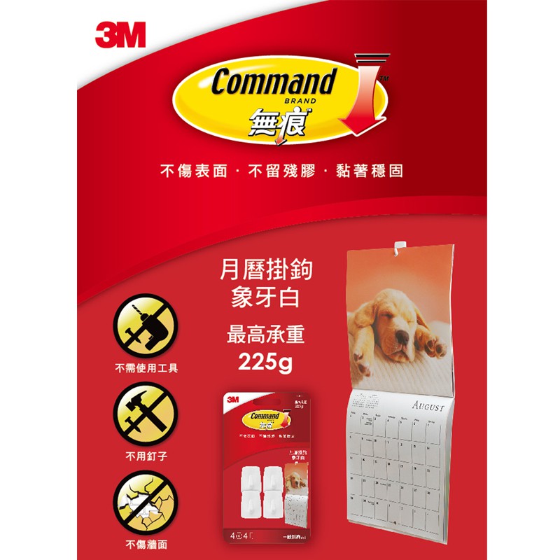 3M 無痕月曆掛鉤-象牙白 免鑽掛勾