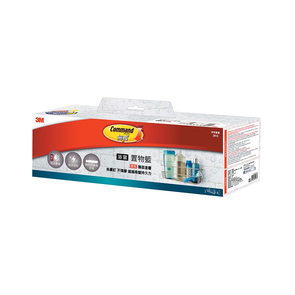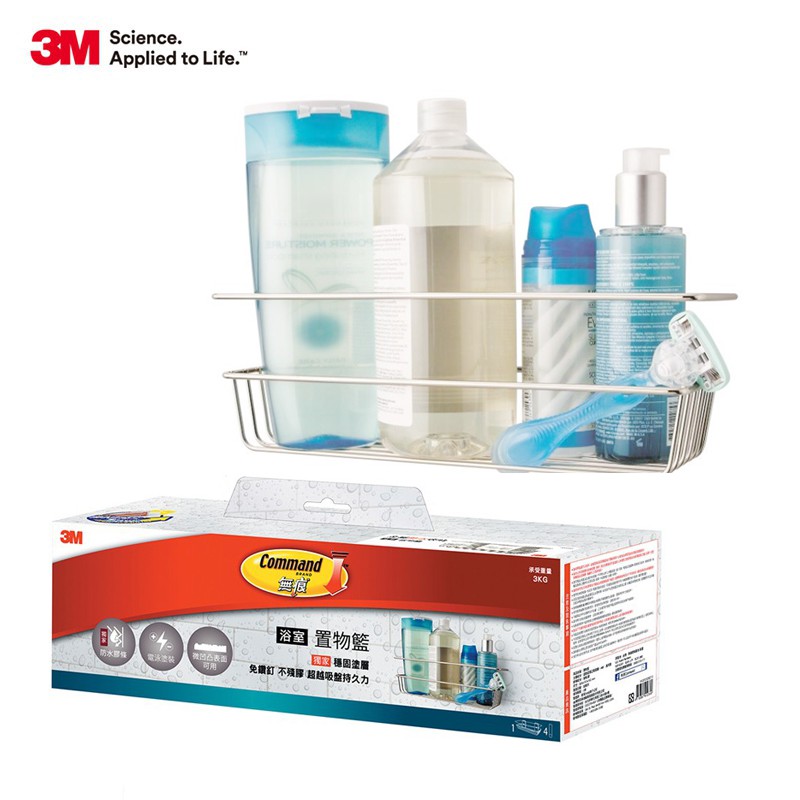 3M 無痕 金屬防水收納-浴室免鑽 置物籃-US設計款