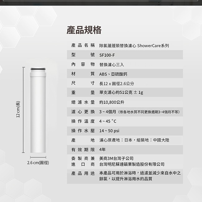 3M ShowerCare SF100專用除氯蓮蓬頭替換濾心(通用SF200)