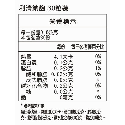 【養生小舖】利清納麴(30粒)-美國進口-照顧銀髮父母及高負擔飲食家人