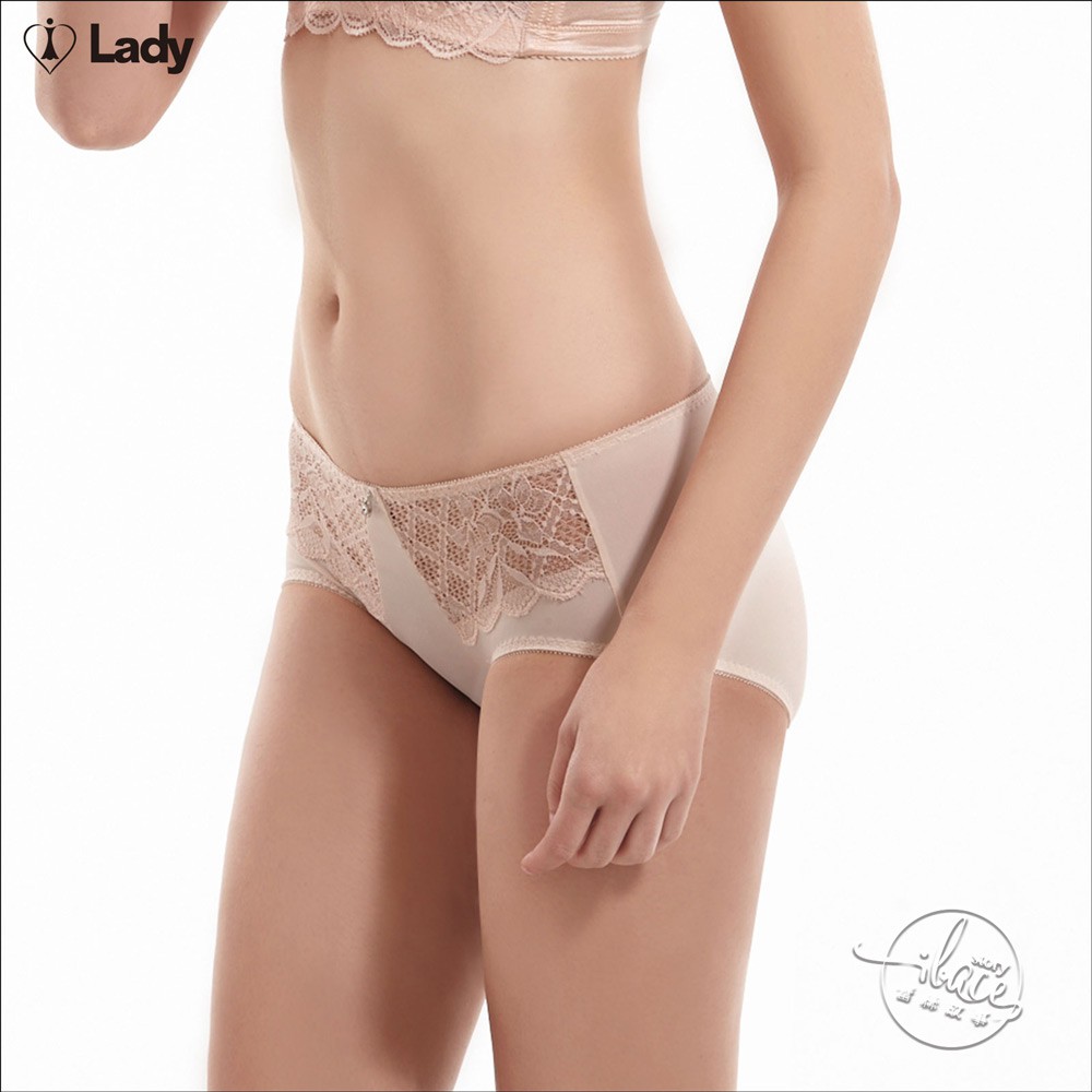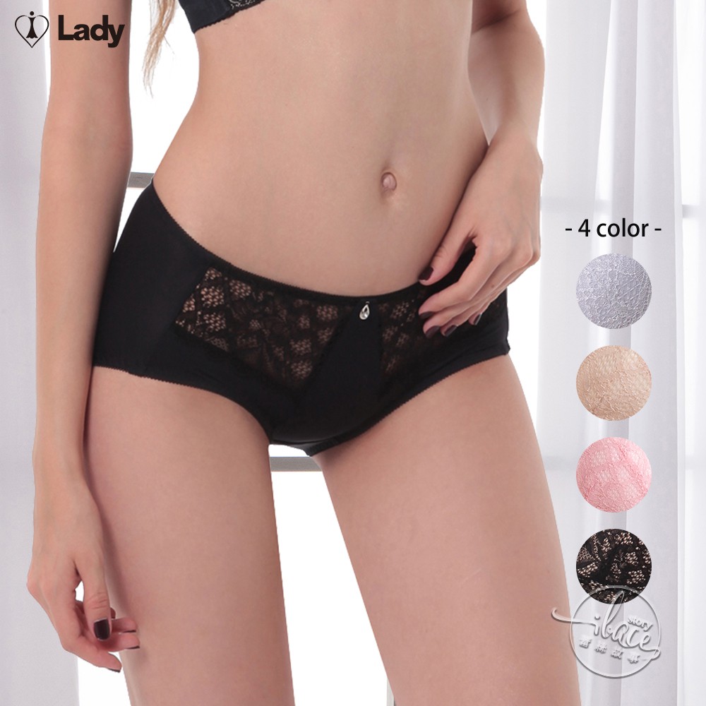 LADY 闇夜天使系列 蕾絲中腰平口褲 ( 透視黑 / 典雅灰 / 亮金膚 / 恬靜粉 )