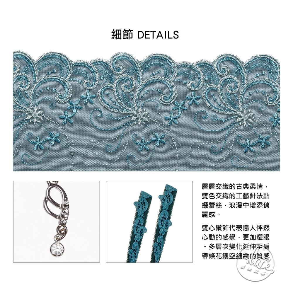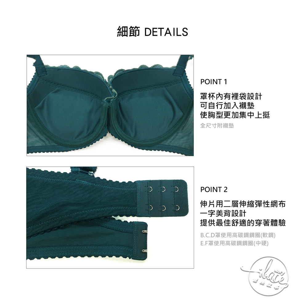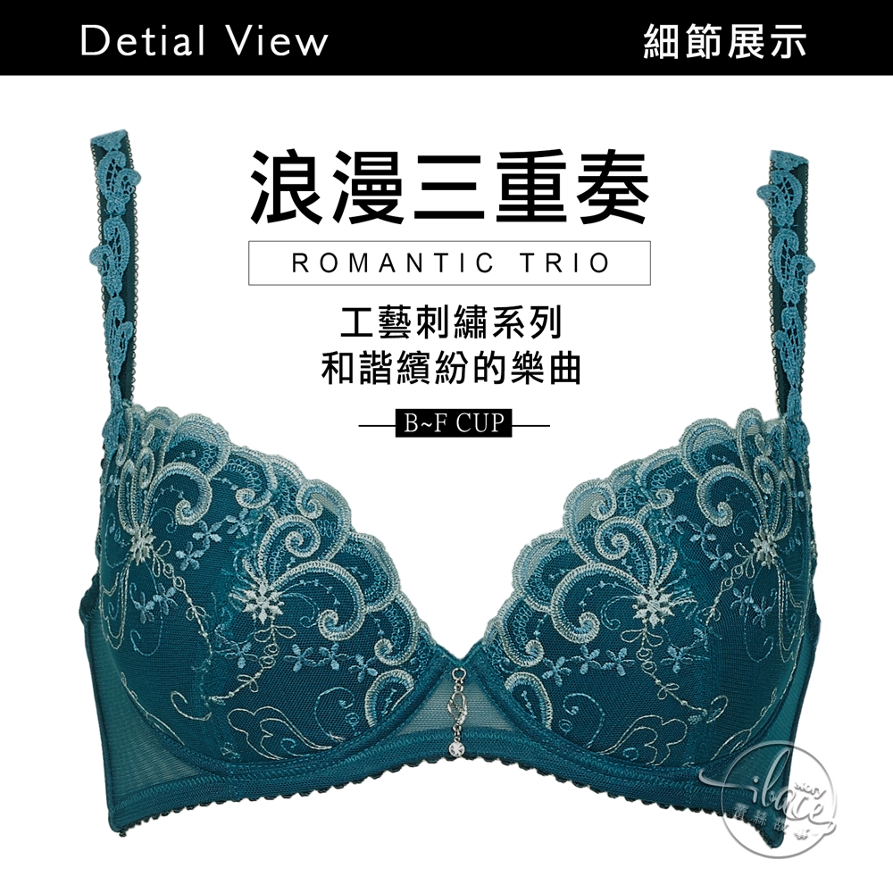 LADY 浪漫三重奏系列 刺繡深線內衣 B-F罩 ( 寶石綠 )