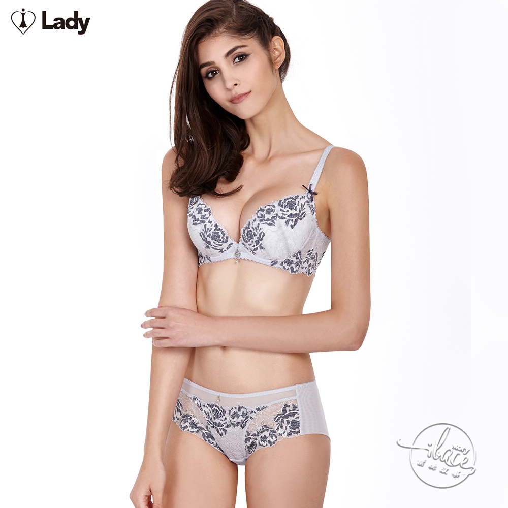 LADY 迷戀花影系列 蕾絲深線成套內衣 B-E罩 三角 平口 隨機配褲 ( 古堡灰 )
