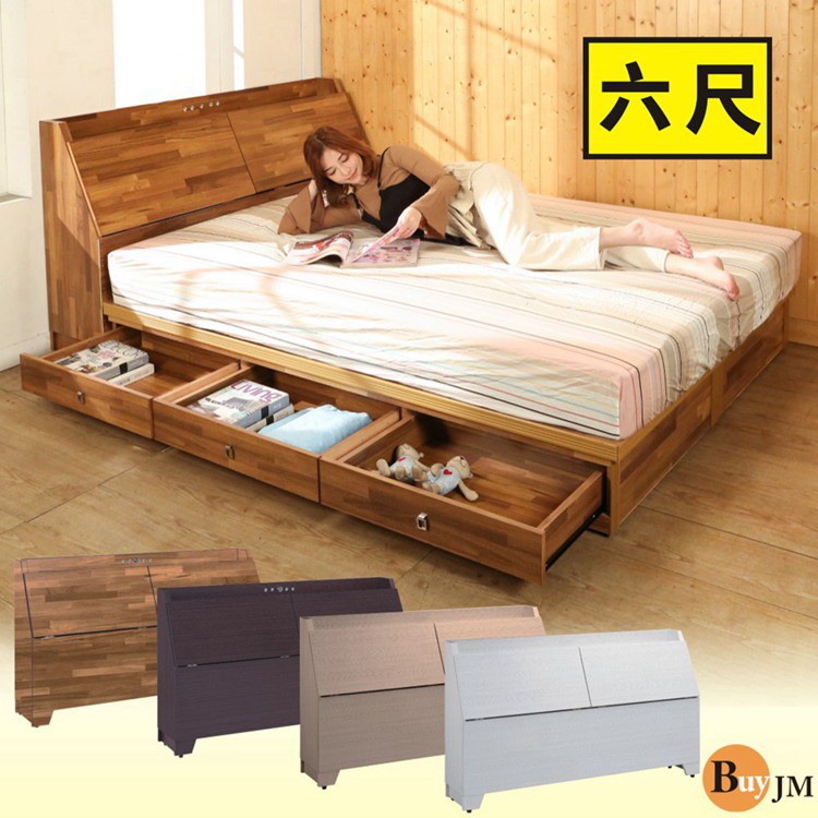 BuyJM雙人6尺床頭箱+6抽床底房間2件組 4色