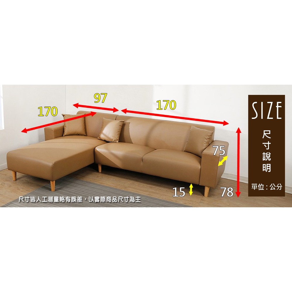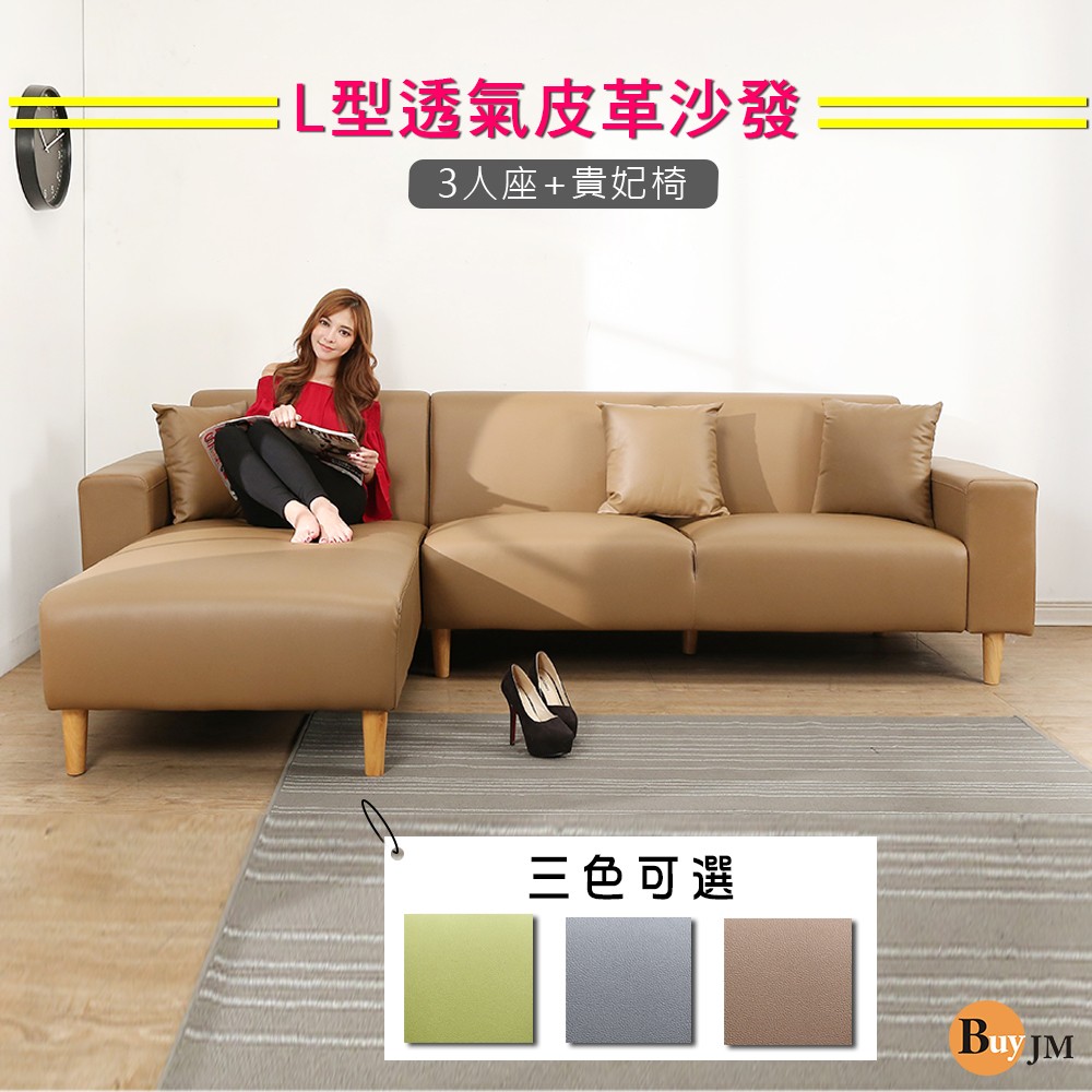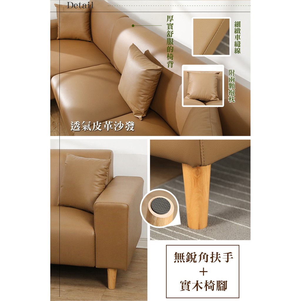 豪華實木腳透氣皮革三人座L型沙發/3色 SF605-13