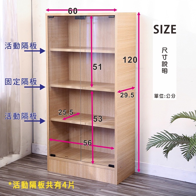 BuyJM低甲醛加高120*60公分大六層玻璃門置物櫃/展示櫃/公仔櫃/書櫃 玻璃展示櫃 模型櫃 台灣製BO051-6