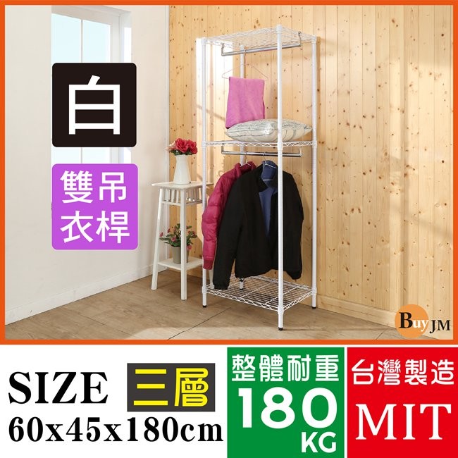 含運 白烤漆60x45x180cm三層雙桿衣櫥I-DA-WA030WH