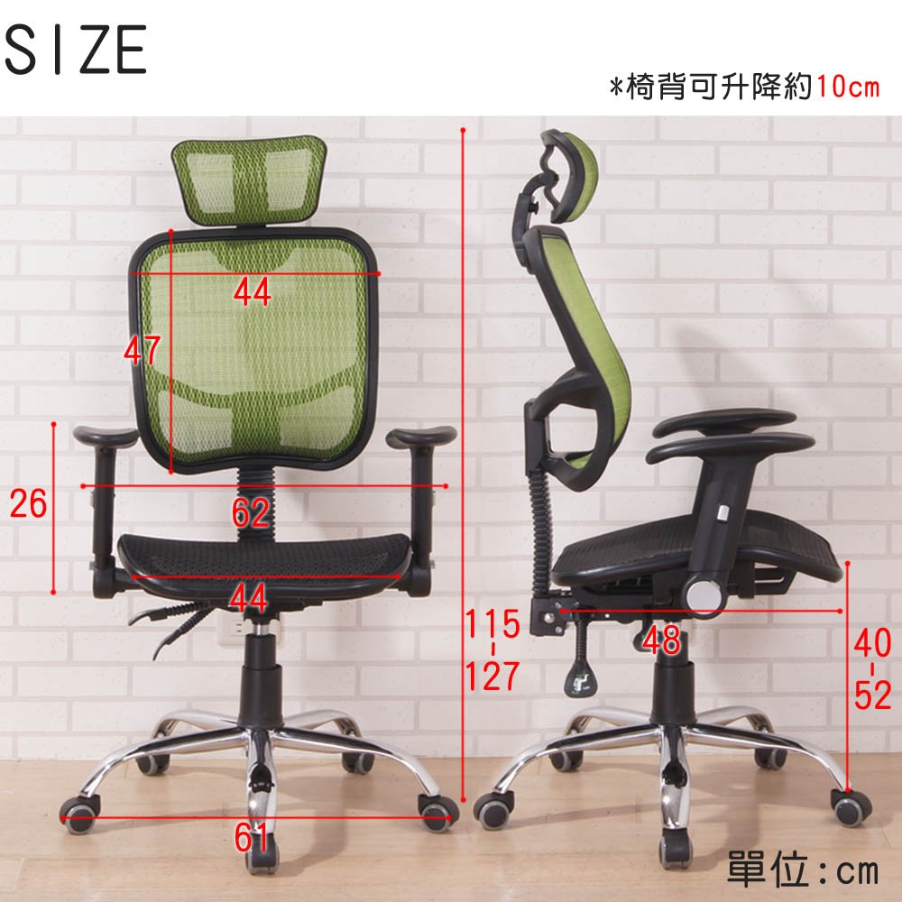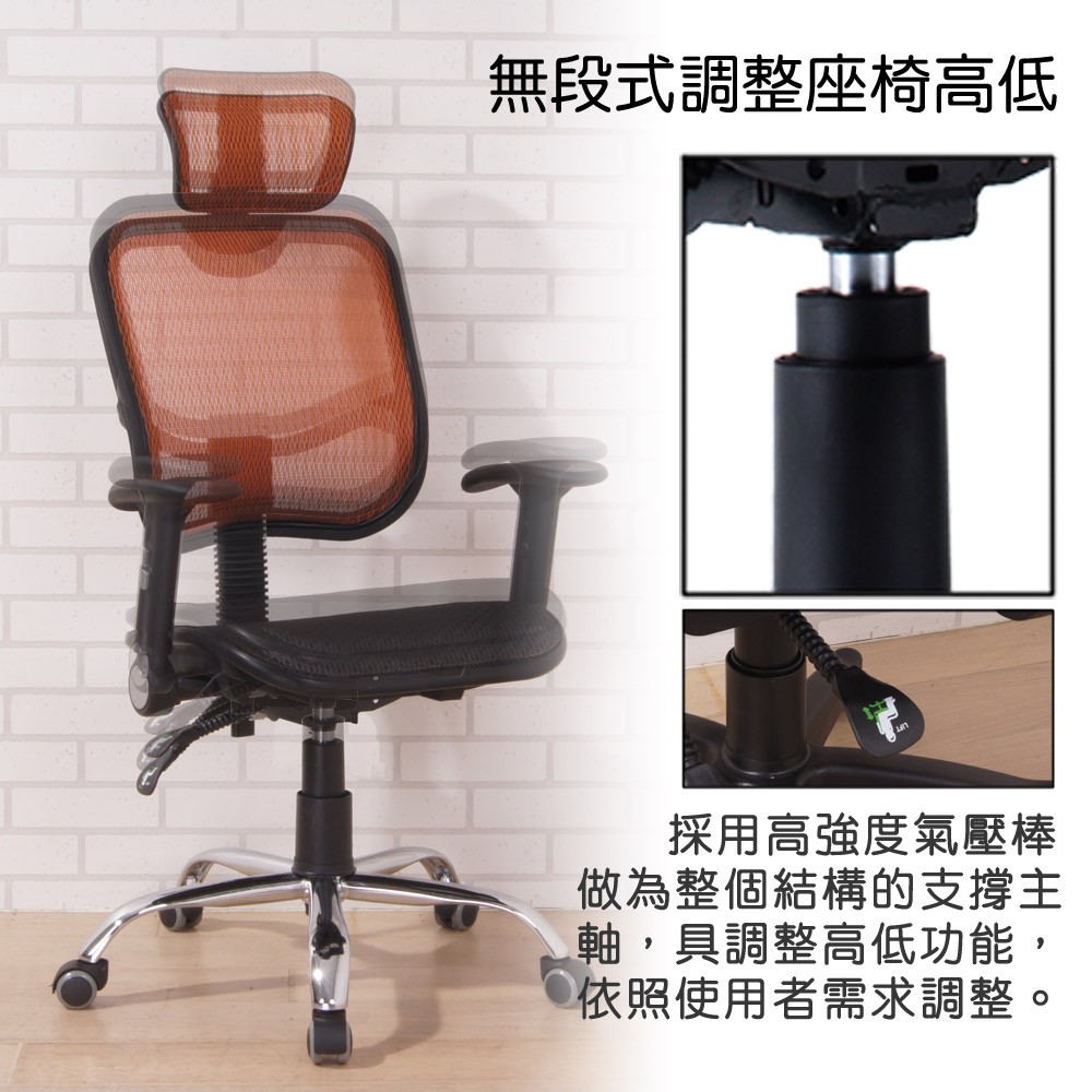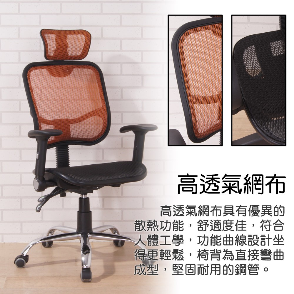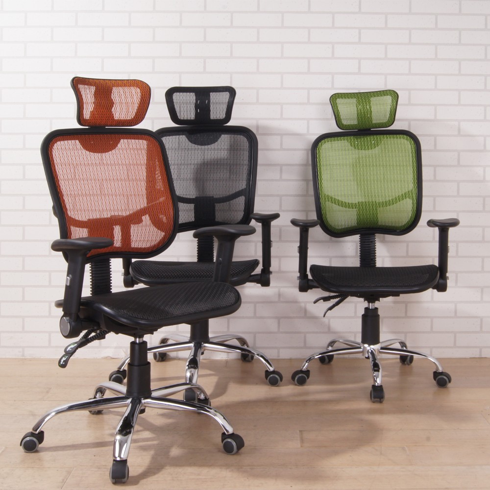 BuyJM 全網高背附頭枕辦公椅/電腦椅(3色) R-D-CH075-H-PU 鐵腳PU輪/附可升降扶手