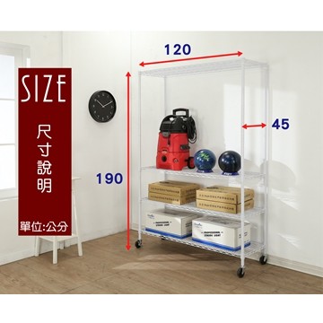 BuyJM 荷重加強型白烤漆四層架附工業輪 120x45x190CM R-DA-SH073WH-PU 鐵力士架