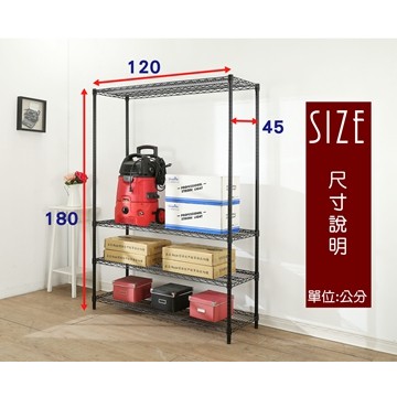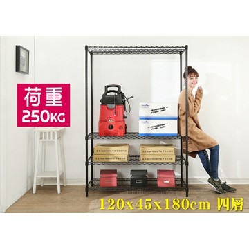 BuyJM 超荷重黑烤漆加強型120x45x180CM四層架 R-DA-SH073BK 鐵架 鐵力士架