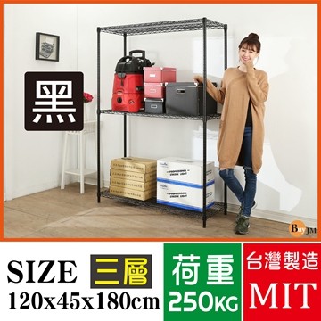 BuyJM 超荷重黑烤漆加強型三層架120x45x180CM 波浪架 置物架 收納 R-DA-SH146BK