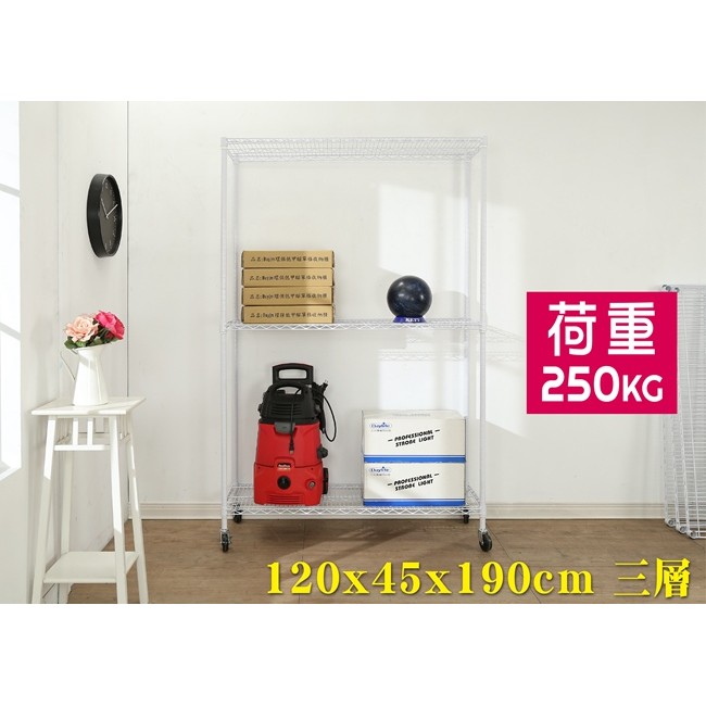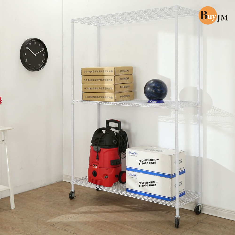 BuyJM 烤漆白超荷重加強型鐵力士120x45x190CM三層附工業輪層架 R-DA-SH146WH-PU