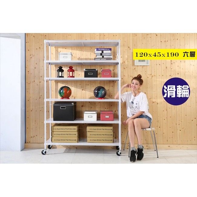 BuyJM 洞洞板白烤漆加強型120x45x190cm六層置物架附工業輪 R-DA-SH158WH-PU