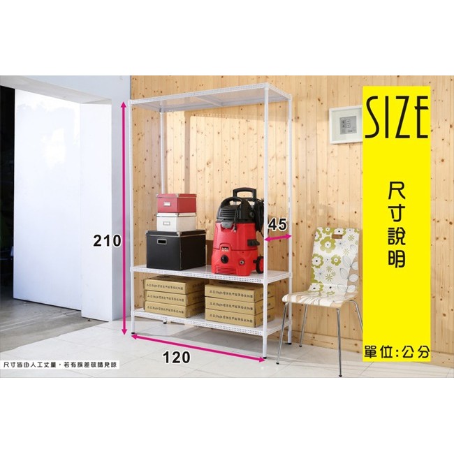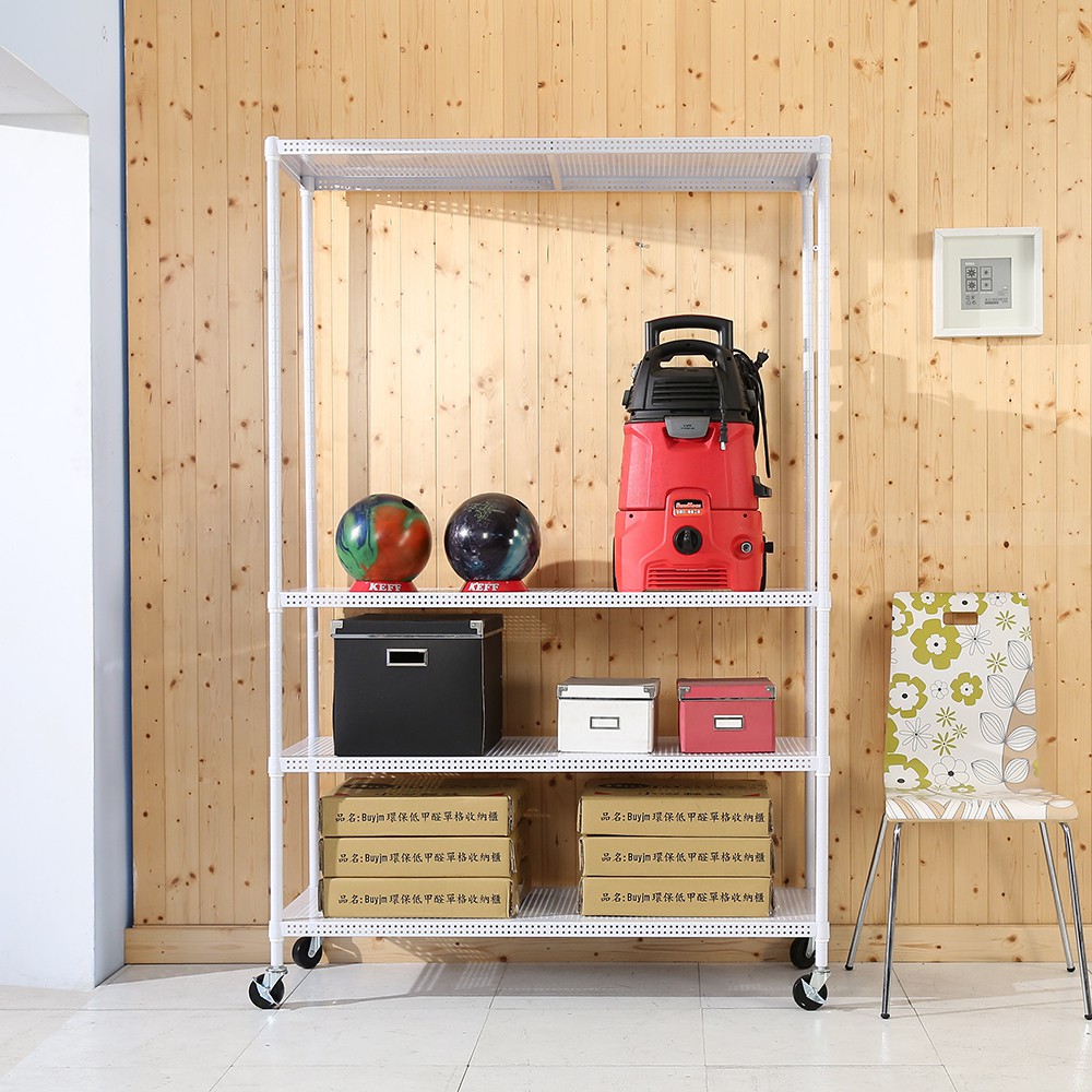 BuyJM 加強型白洞洞板120x45x190cm四層置物架附工業輪 R-DA-SH167WH-PU