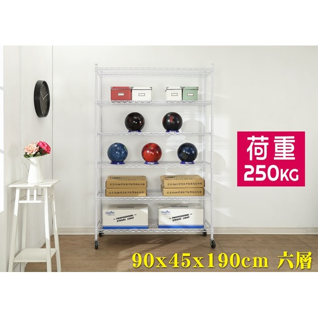 BuyJM 超荷重白烤加強型90x45x190CM鐵力士六層附工業輪鍍鉻層架 R-DA-SH194WH-PU