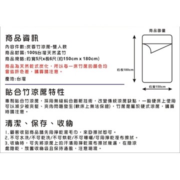 BuyJM 台灣製5X6尺炭化4mm細條無接縫專利貼合竹蓆 涼蓆 GE008-5x6 雙人 竹蓆 外銷日本