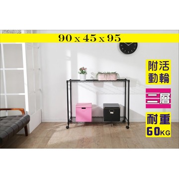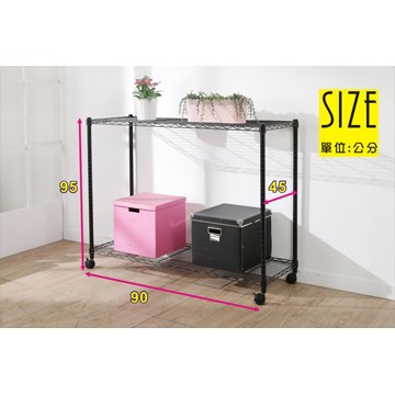 《Buy JM》黑烤漆90x45x95cm二層置物架附PP輪/波浪架/R-DA-SH186BK-PP