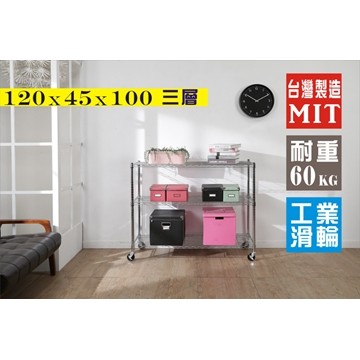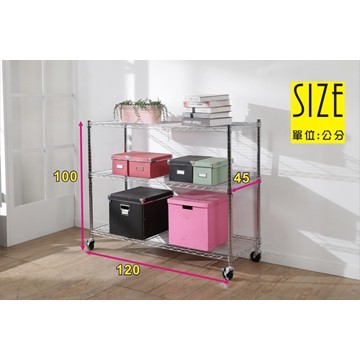 《Buy JM》電鍍鐵網120x45x100cm附工業輪三層置物架/R-DA-SH179-PU