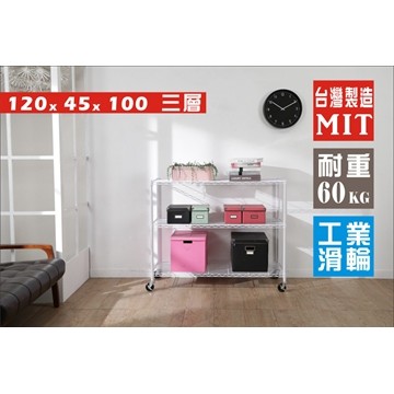 《Buy JM》白烤漆120x45x100cm附工業輪三層置物架/波浪架/R-DA-SH179WH-PU