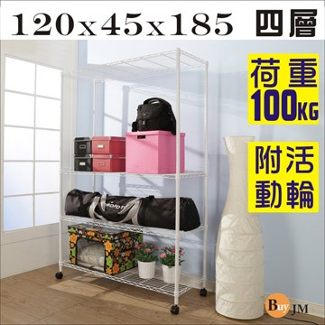 《Buy JM》白烤漆120x45x185cm強固型鎖接管附輪四層架/波浪架/R-DA-SH086WH-PP