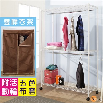 《Buy JM》烤漆鐵力士強固型三層雙桿布套衣櫥附輪子(咖啡色布套)(120x45x185CM)/WA020WH-C