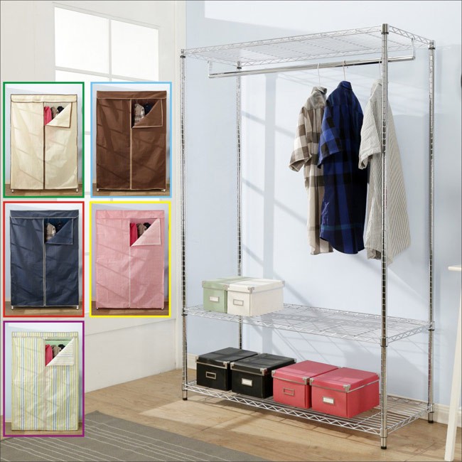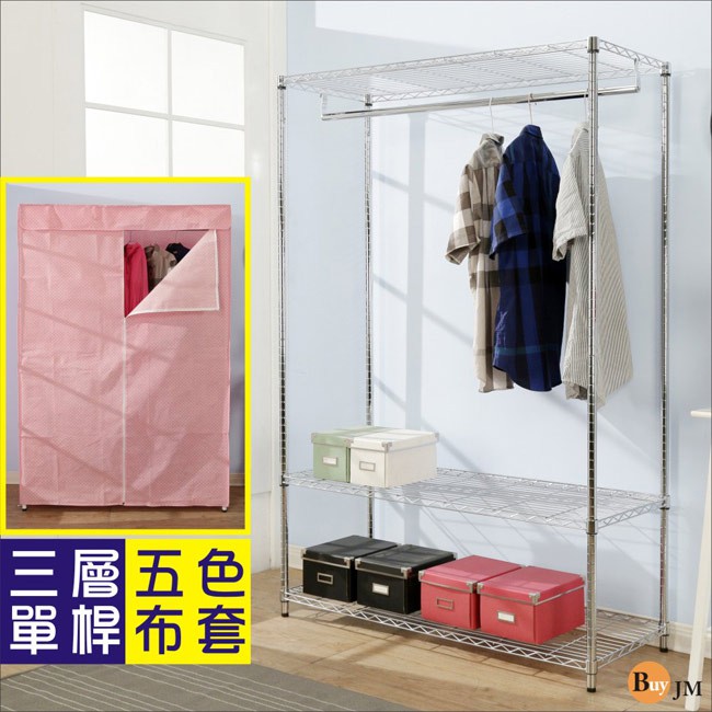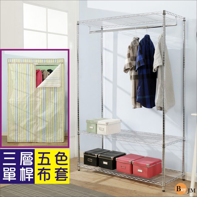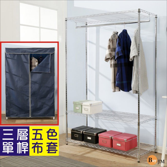 BuyJM 附布套三層單桿衣櫥 層架 五色可選 120x45x180CM I-DA-WA013