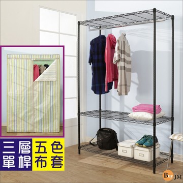 黑烤漆強鐵力士強固型附布套三層單桿衣櫥(120x45x180CM)/層架(綠白直條)/I-DA-WA021BK-G