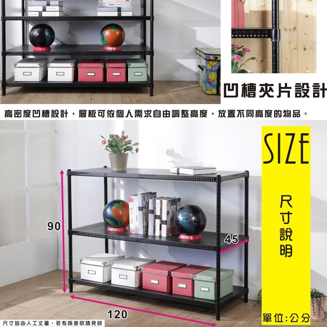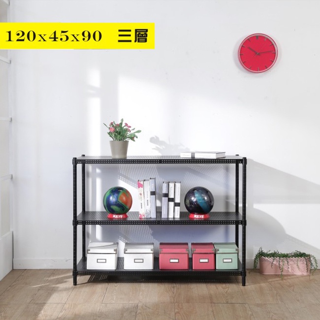《Buy JM》沖孔板 鐵力士加強型黑洞洞板耐重三層置物架/R-DA-SH174BK