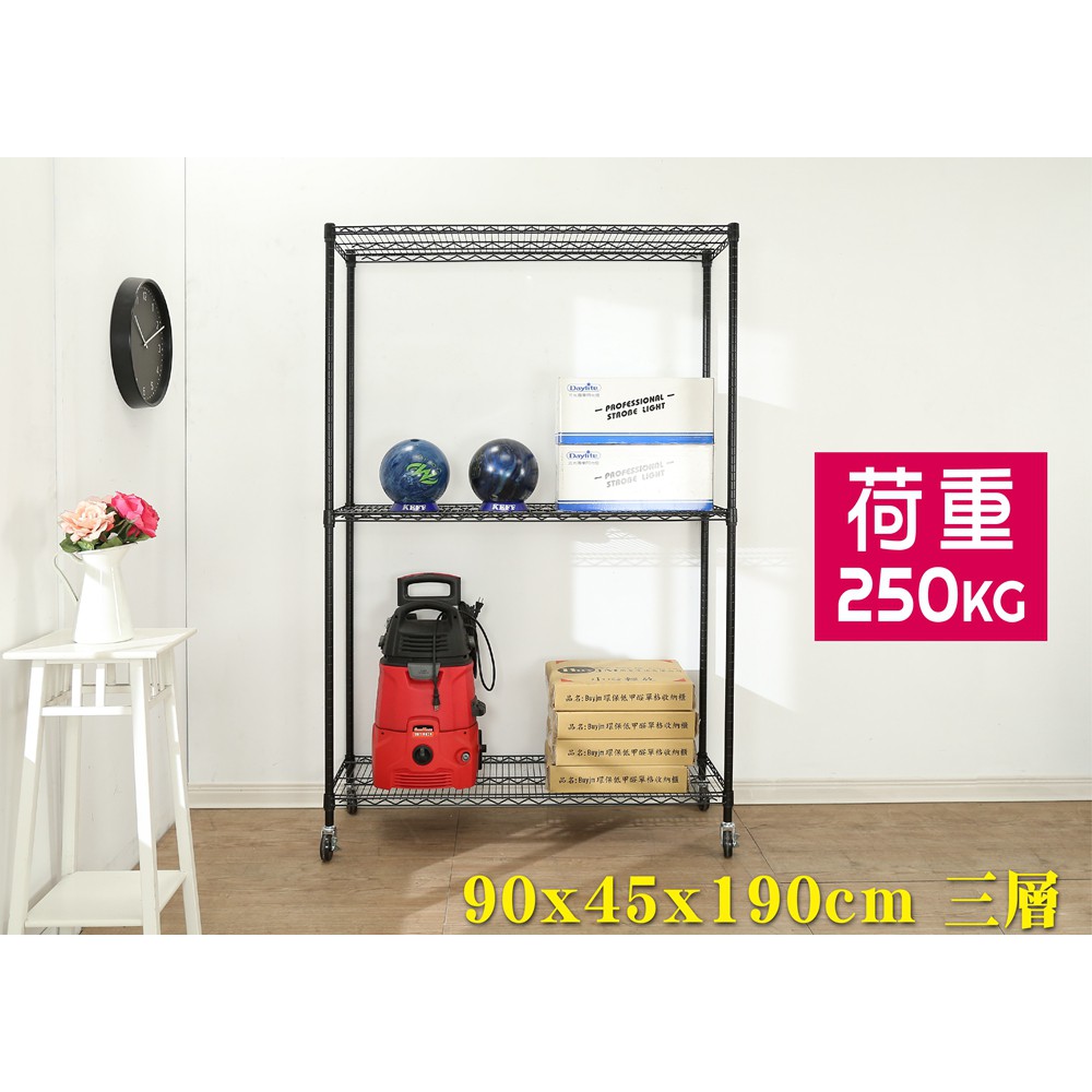 BuyJM 超荷重黑烤加強型90x45x190CM鐵力士三層附工業輪層架 波浪架 R-DA-SH195BK-PU 鐵架