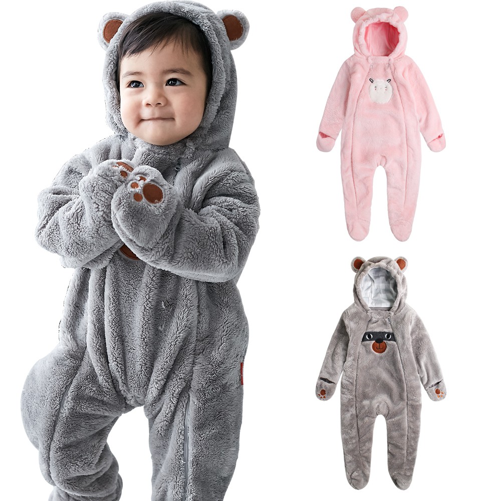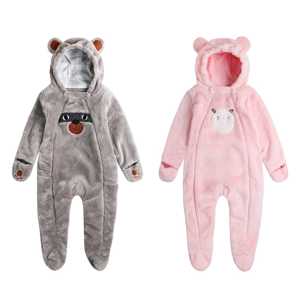 augelute 長袖連身衣 厚款爬服 雙拉鍊動物造型包腳連身衣 82054