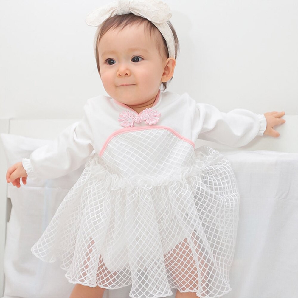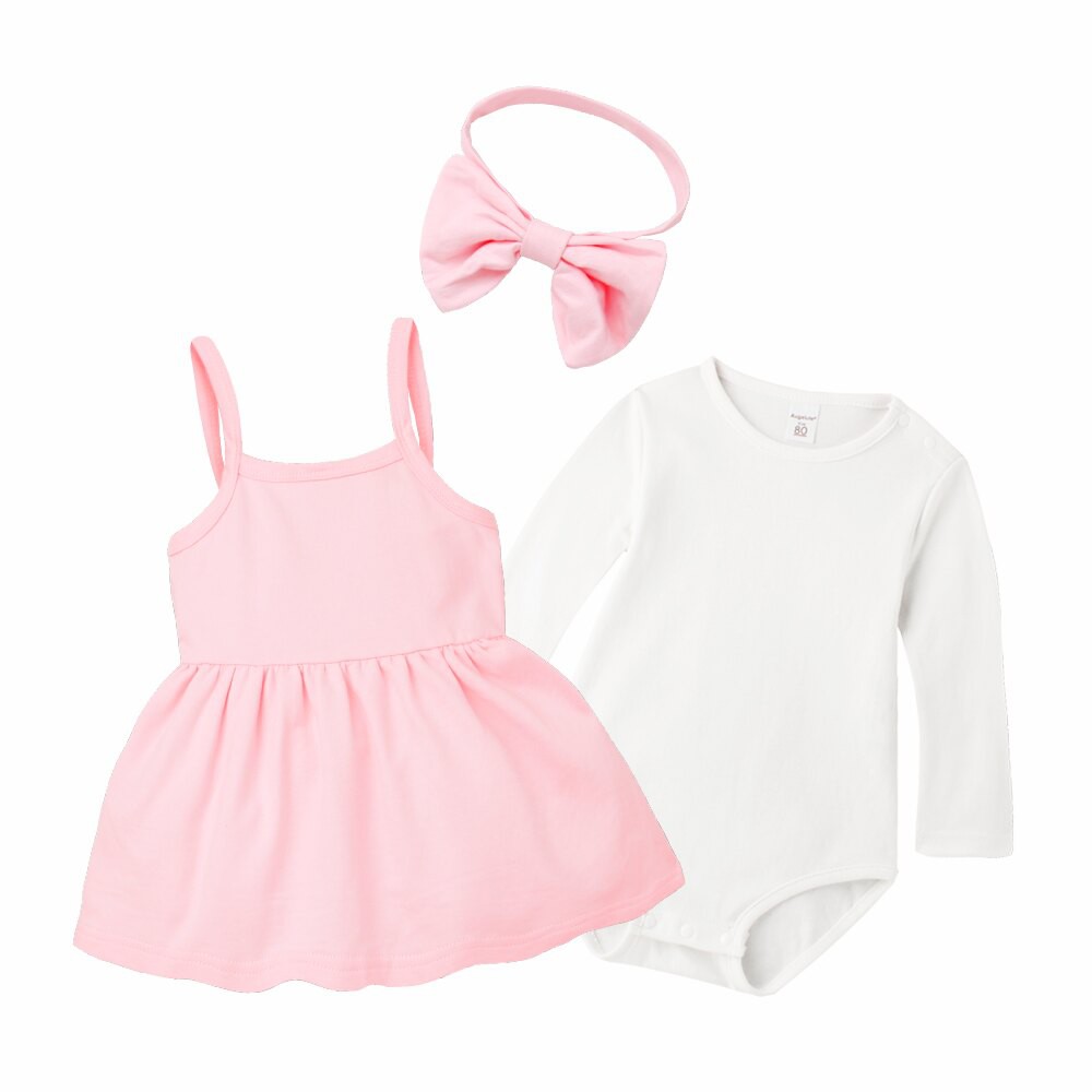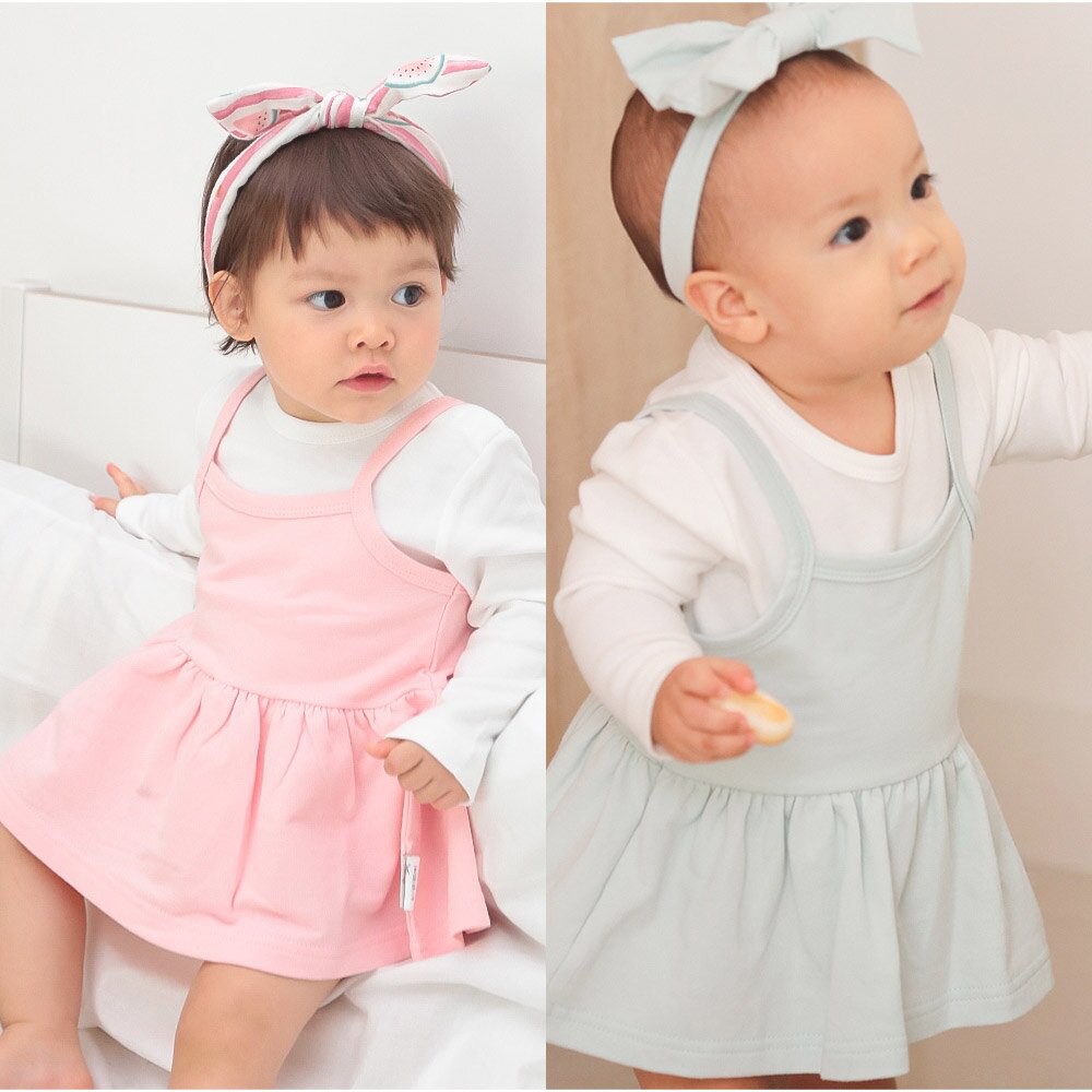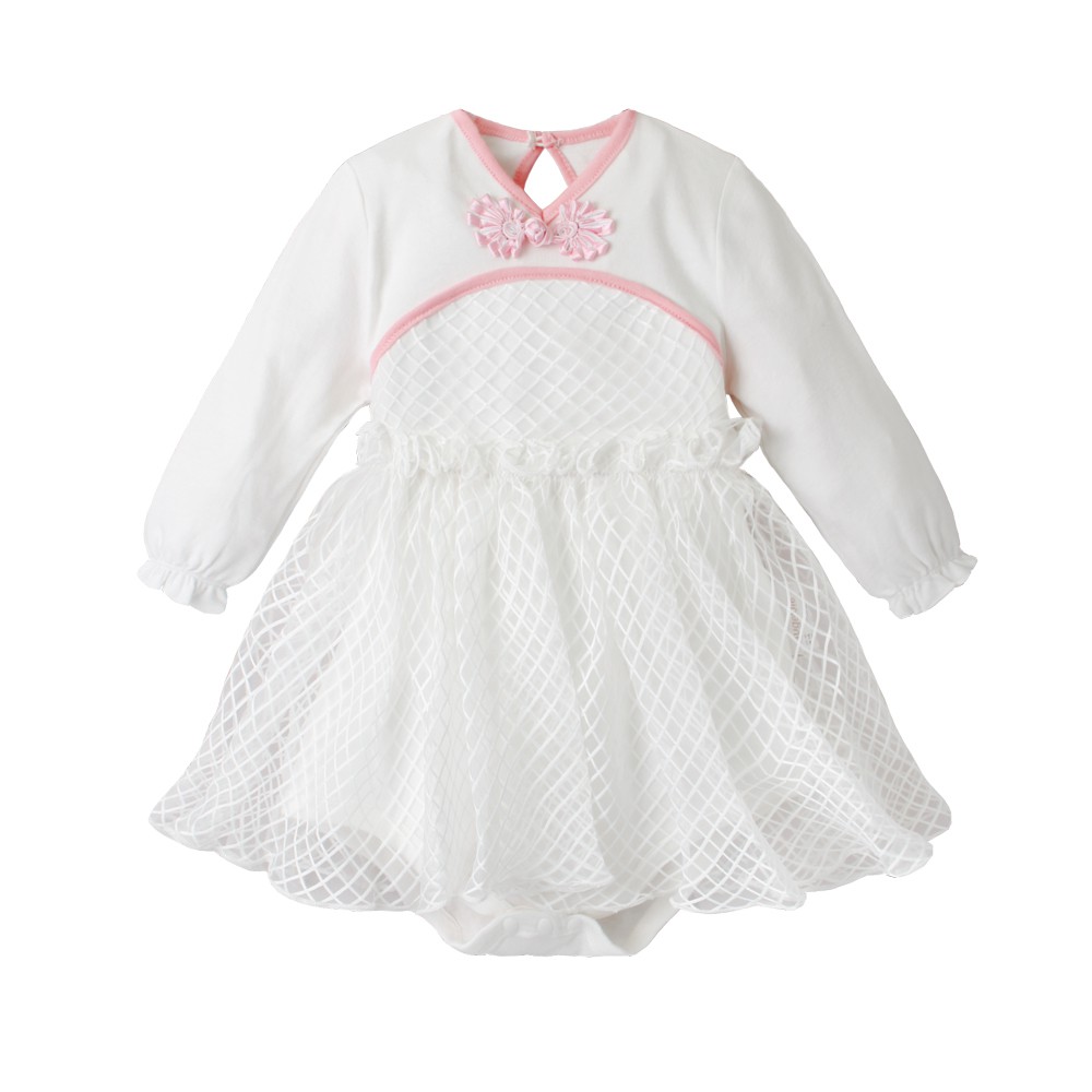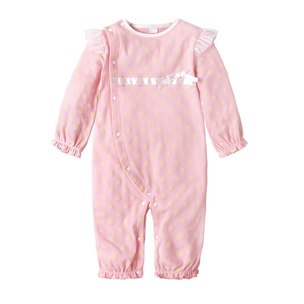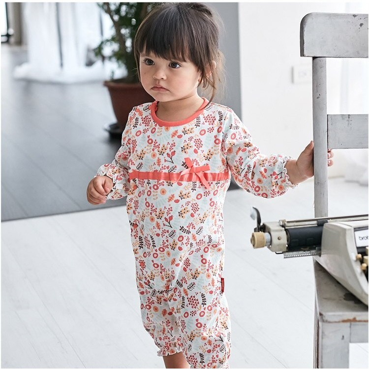 Augelute Baby童衣 女寶寶蕾絲連身衣 附帽子 點點小碎花連身衣 假兩件長袖爬服 吊帶洋裝包屁套裝 70125