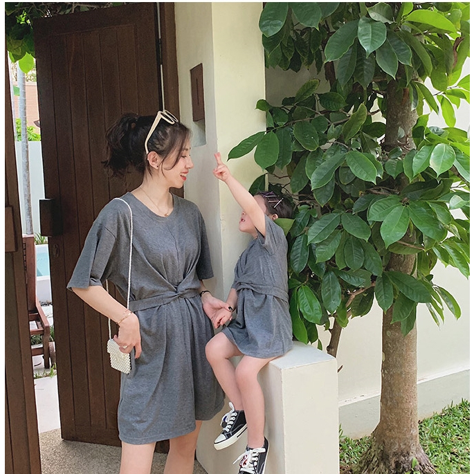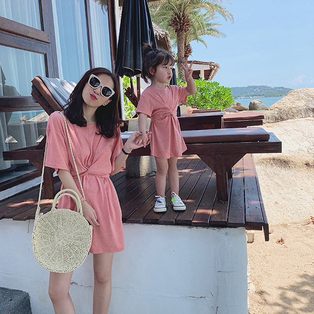 Baby童衣 母女裝 親子裝 簡約素色短袖洋裝 姊妹裝 女寶寶渡假洋裝 89036