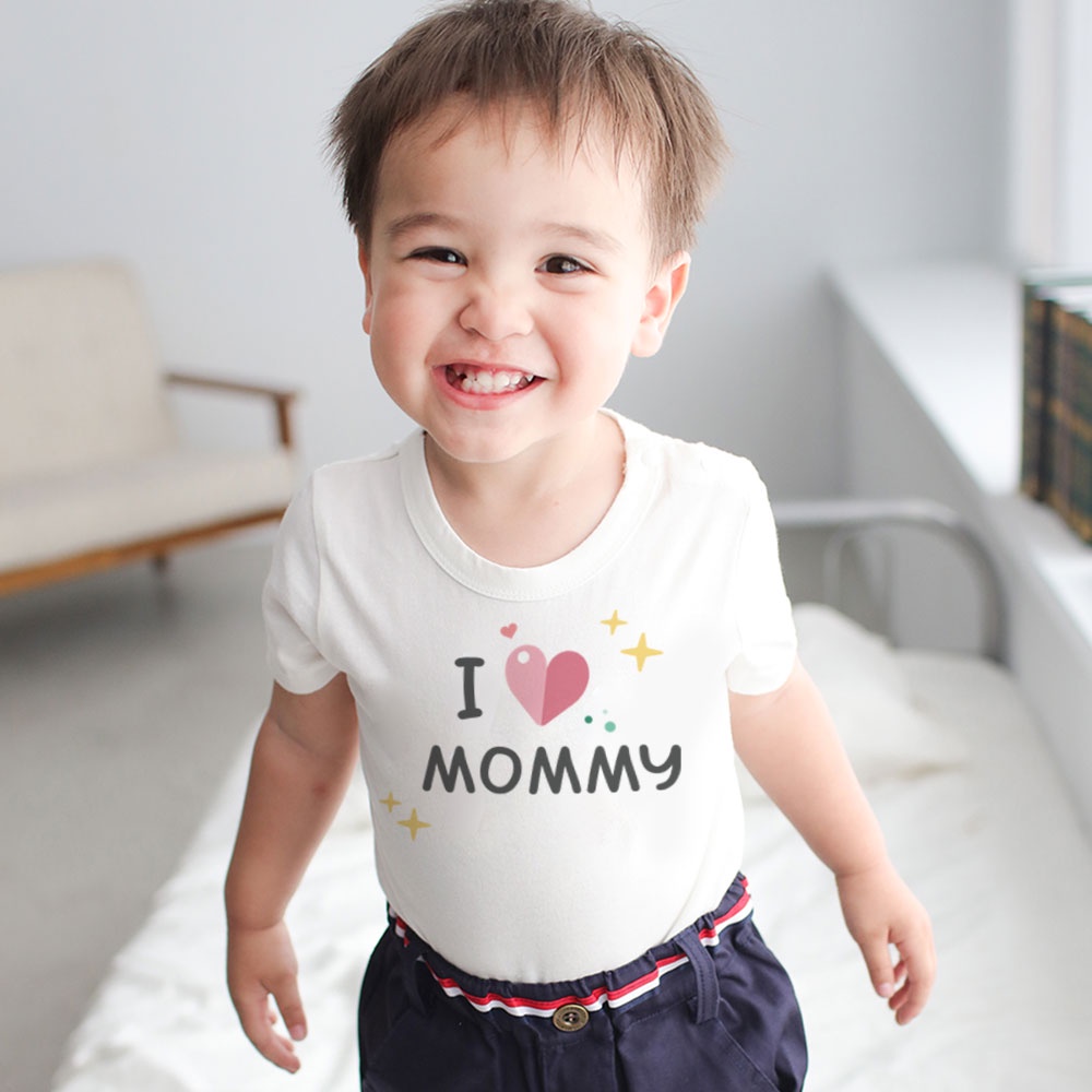 Baby童衣 獨家自印 我愛媽媽英文版系列 兒童圓領長袖T 寶寶包屁衣 男女童短袖上衣 61191