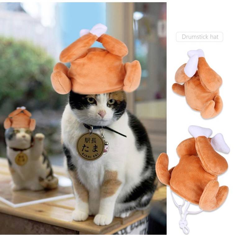 Baby童衣 貓咪自嗨玩具頭套 可愛寵物造型頭套 趣味搞笑寵物帽 雞腿帽 花朵帽 11633