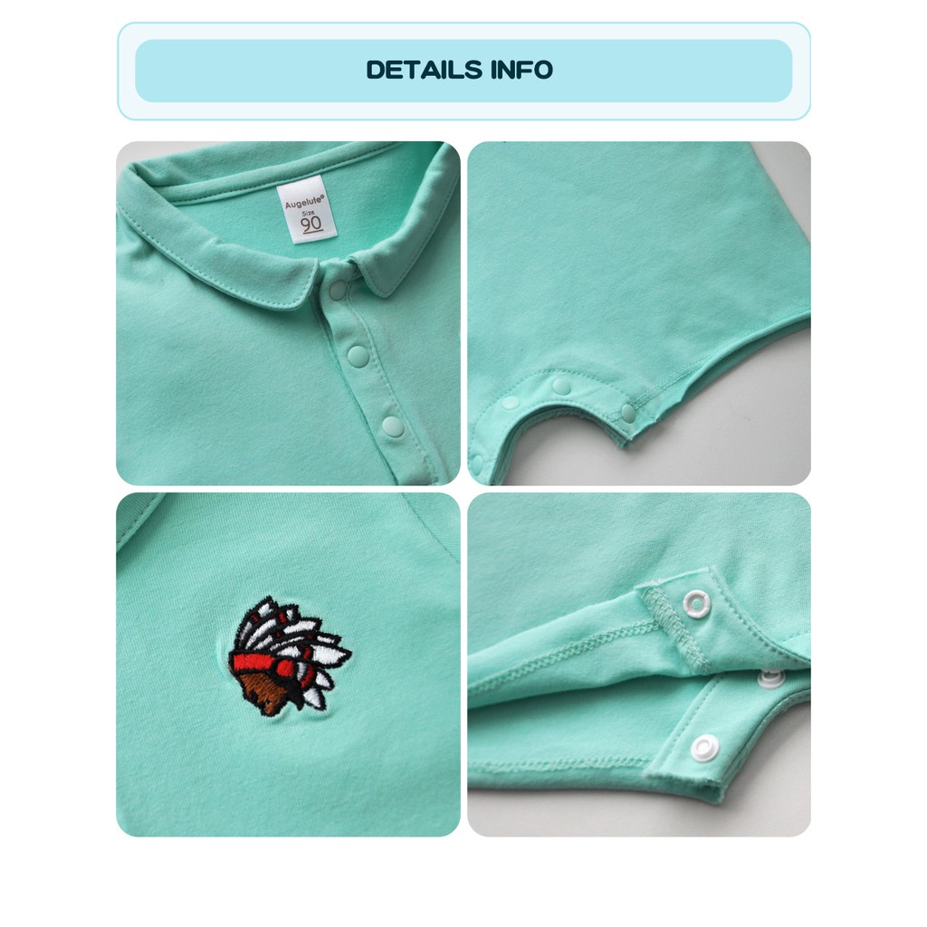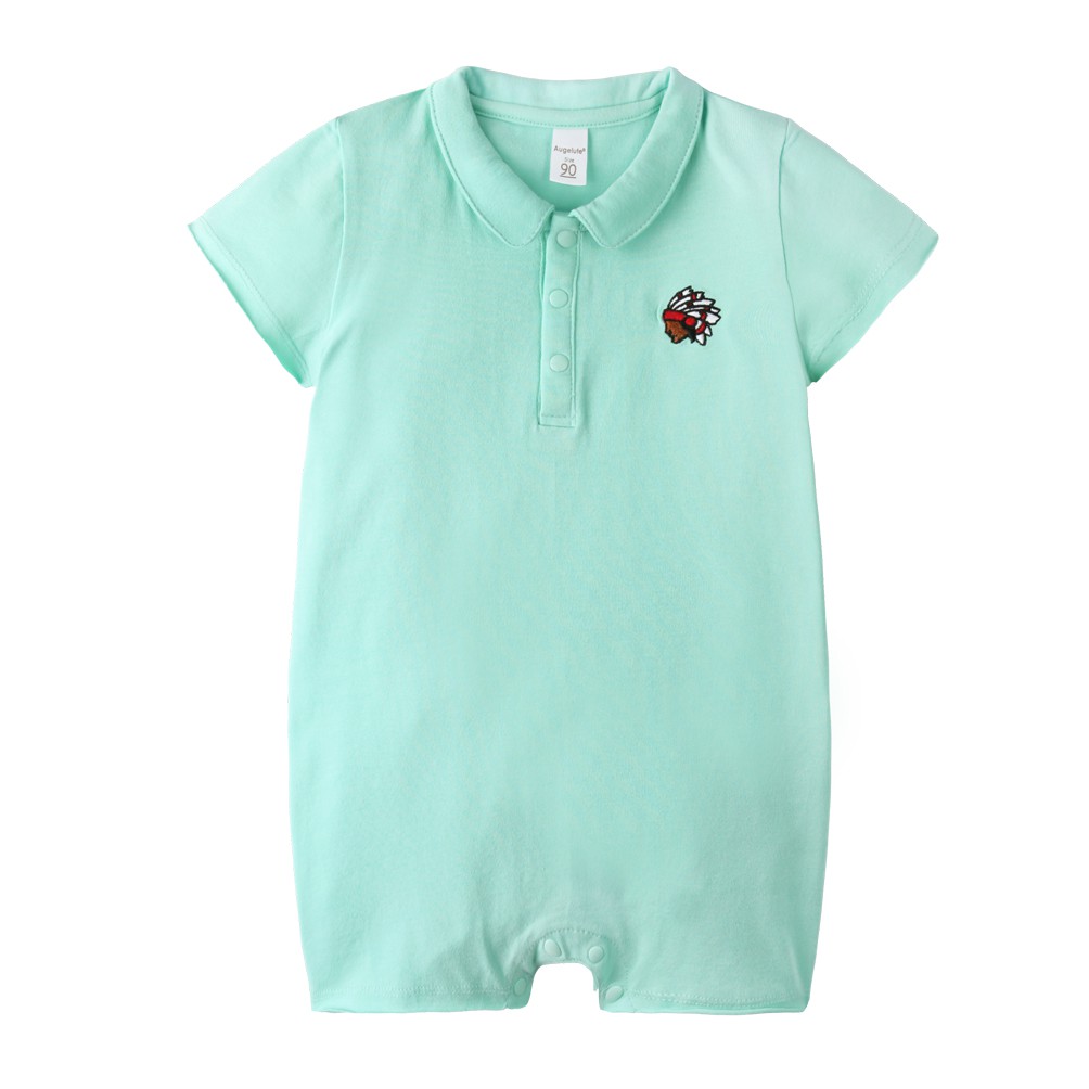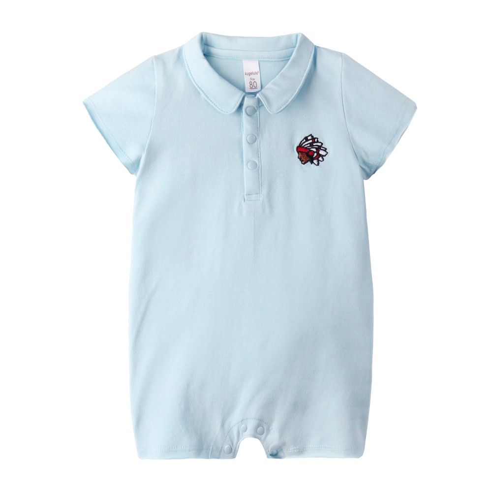 augelute 短袖翻領連身衣 彈力 印地安人刺繡 爬服 哈衣 男寶寶 女寶寶 60011