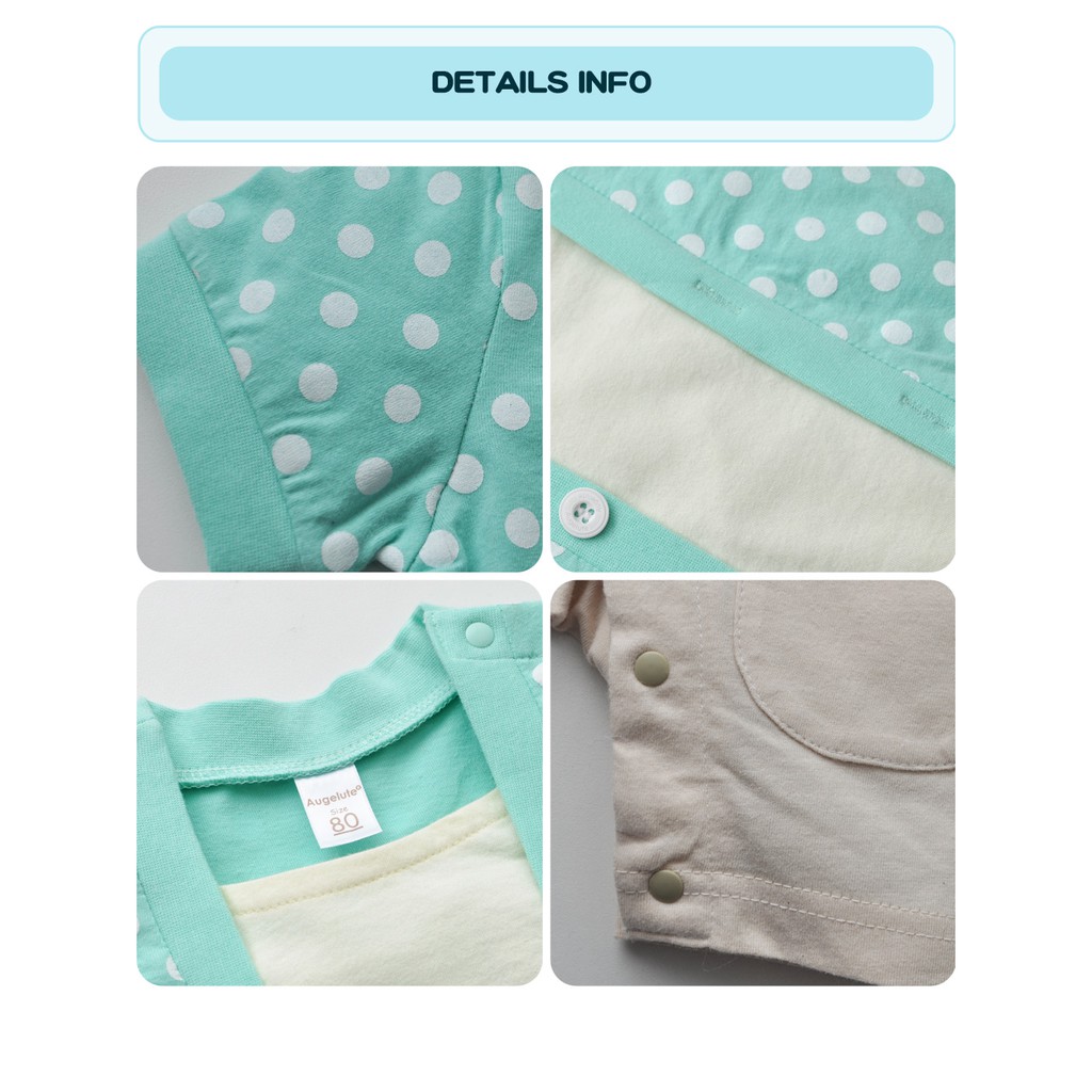 augelute 短袖連身衣 男寶寶 女寶寶 開襟 撞色 點點 爬服 哈衣 60145
