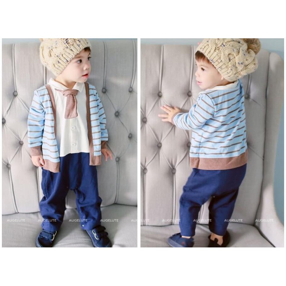 augelute 長袖連身衣 學院風 男寶寶 小紳士 花童 喜宴 正式場合 爬服 哈衣 37022