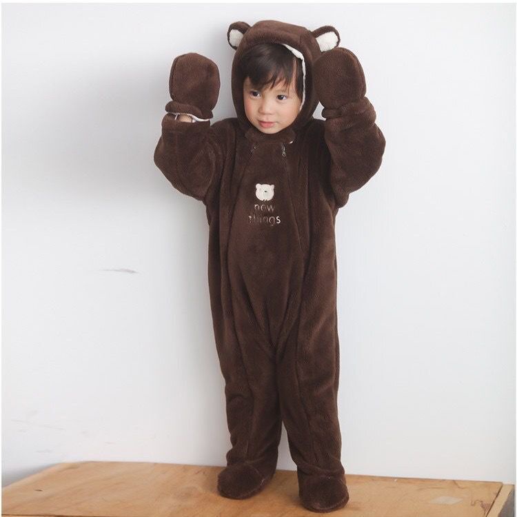 Augelute 寶寶連身衣 兒童保暖連帽包屁衣 後款連體衣 長袖刷毛連身衣 秋冬加厚 60173