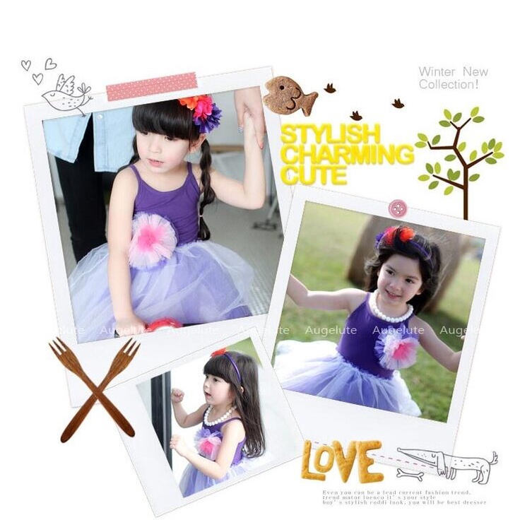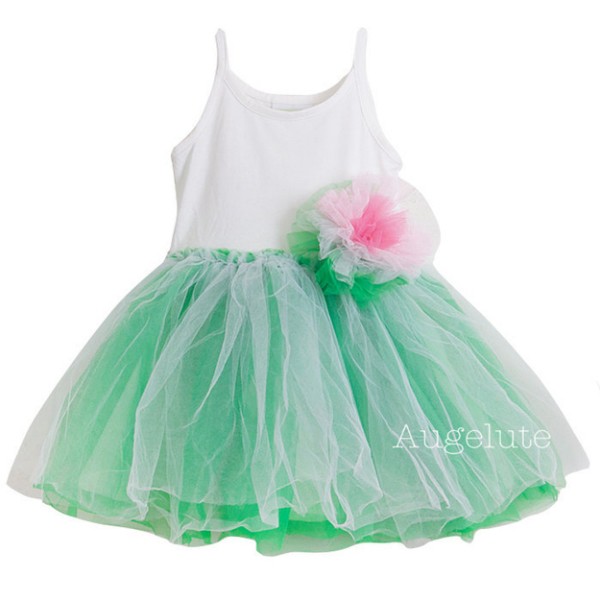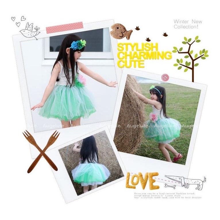Augelute 露背洋裝 撞色蓬裙 女童 連身裙 洋裙 吊帶裙 連衣裙 32034