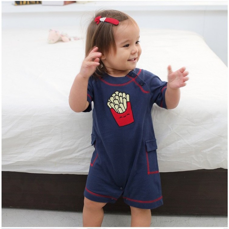 Augelute Baby童衣短袖連身衣 純棉刺繡爬服 哈衣 男寶寶 女寶寶 90042