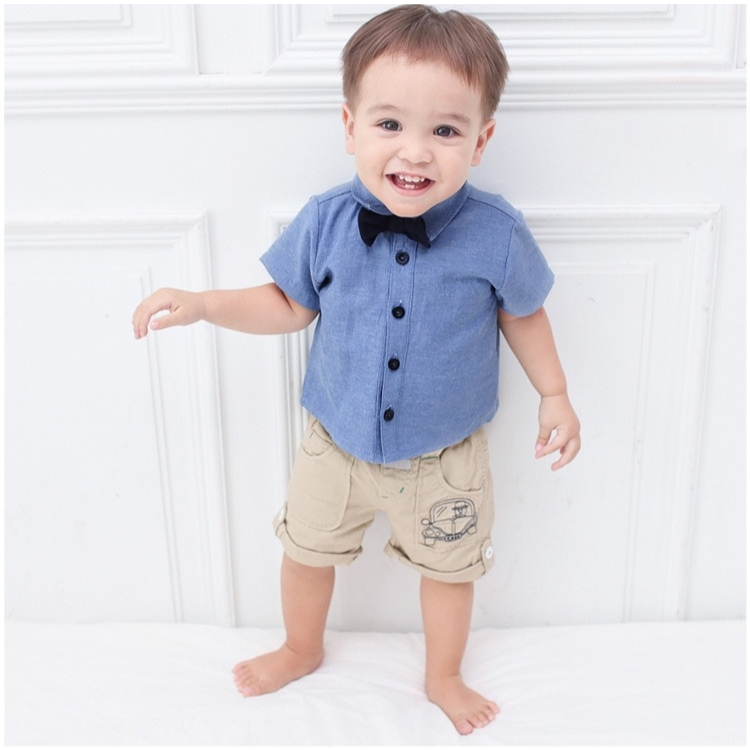 Augelute Baby童衣 兒童紳士套裝 男寶寶領結襯衫+無袖包屁衣 60131