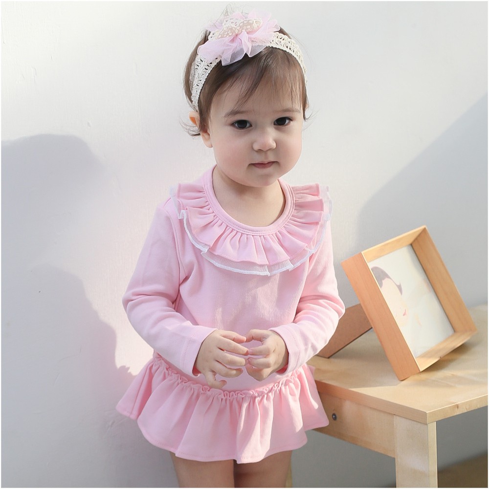 Augelute 長袖包屁裙 純棉女寶寶包屁衣 簡約氣質款爬服兩件組 41321