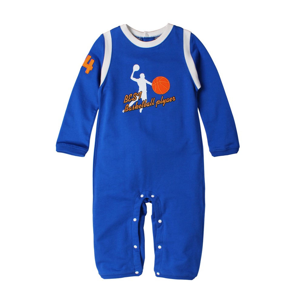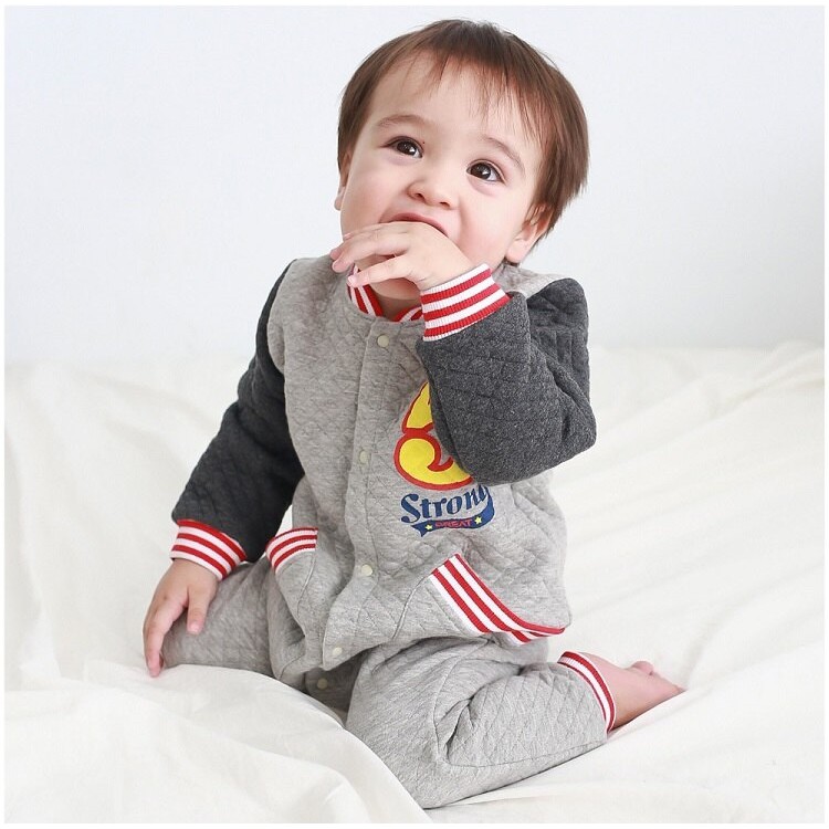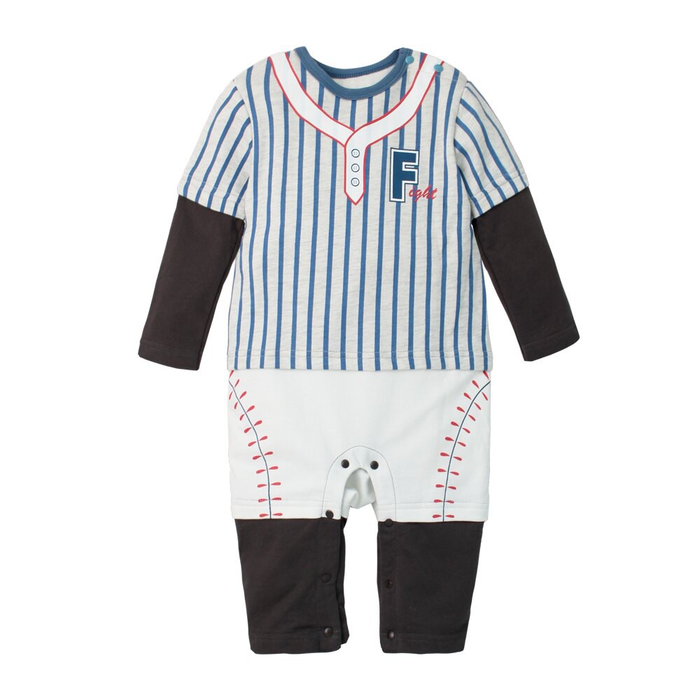 Augelute baby童衣 長袖假二件連身衣 男寶寶運動風造型爬服 海軍風前開釦連身衣 加厚哈衣 37012