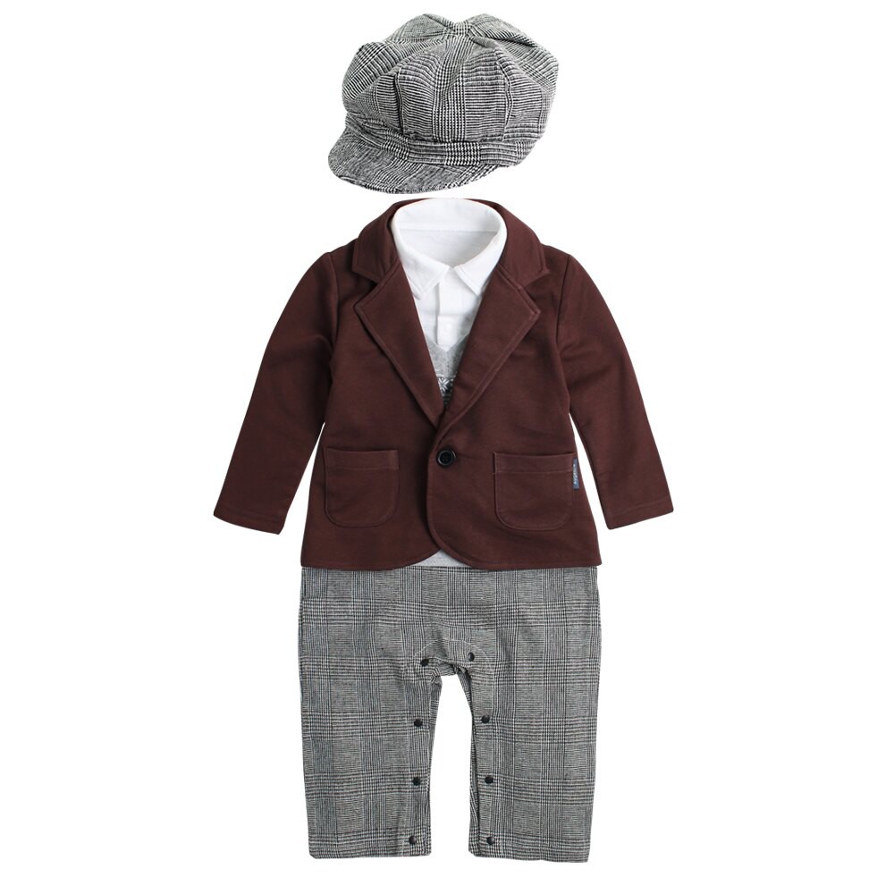 Augelute Baby童衣 男童假吊帶西裝套裝 假兩件男寶寶紳士套裝 男花童服 男寶寶連身衣 60309