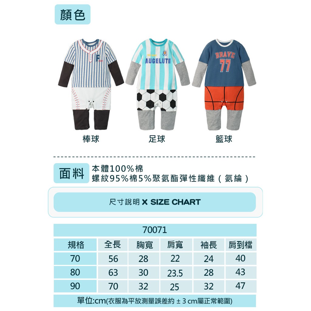 Augelute 長袖連身衣 運動風 假四件 造型爬服 哈衣 男寶寶 70071
