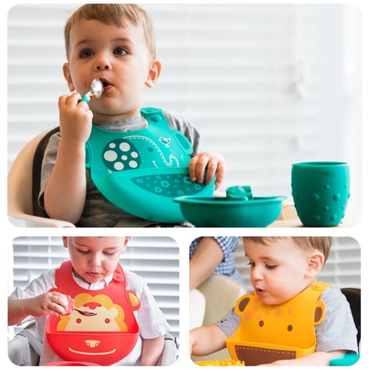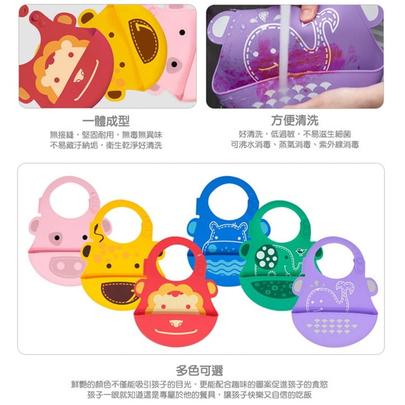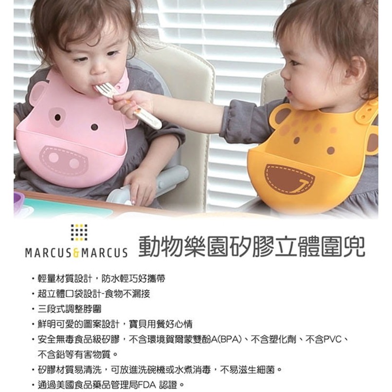 【MARCUS&MARCUS】動物樂園矽膠立體圍兜 寶寶吃飯飯兜 防水圍兜 接飯飯兜 收納圍兜 88469