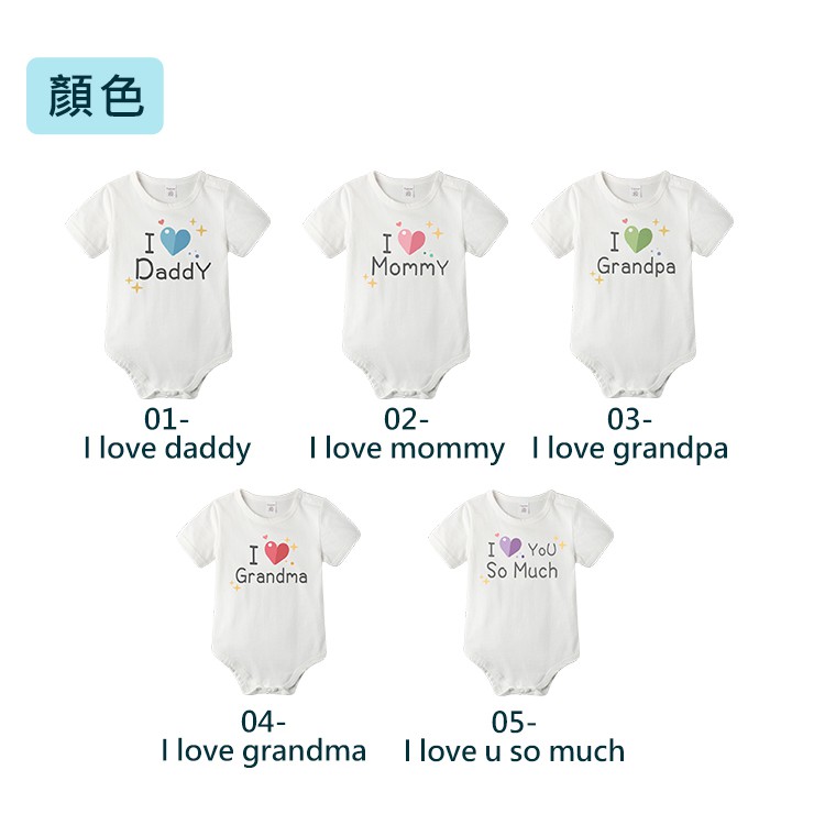Augelute 兒童趣味文字短袖包屁衣 我愛媽媽 阿公阿嬤金孫 我爸超帥我媽超正 寶寶純棉包屁衣 61194